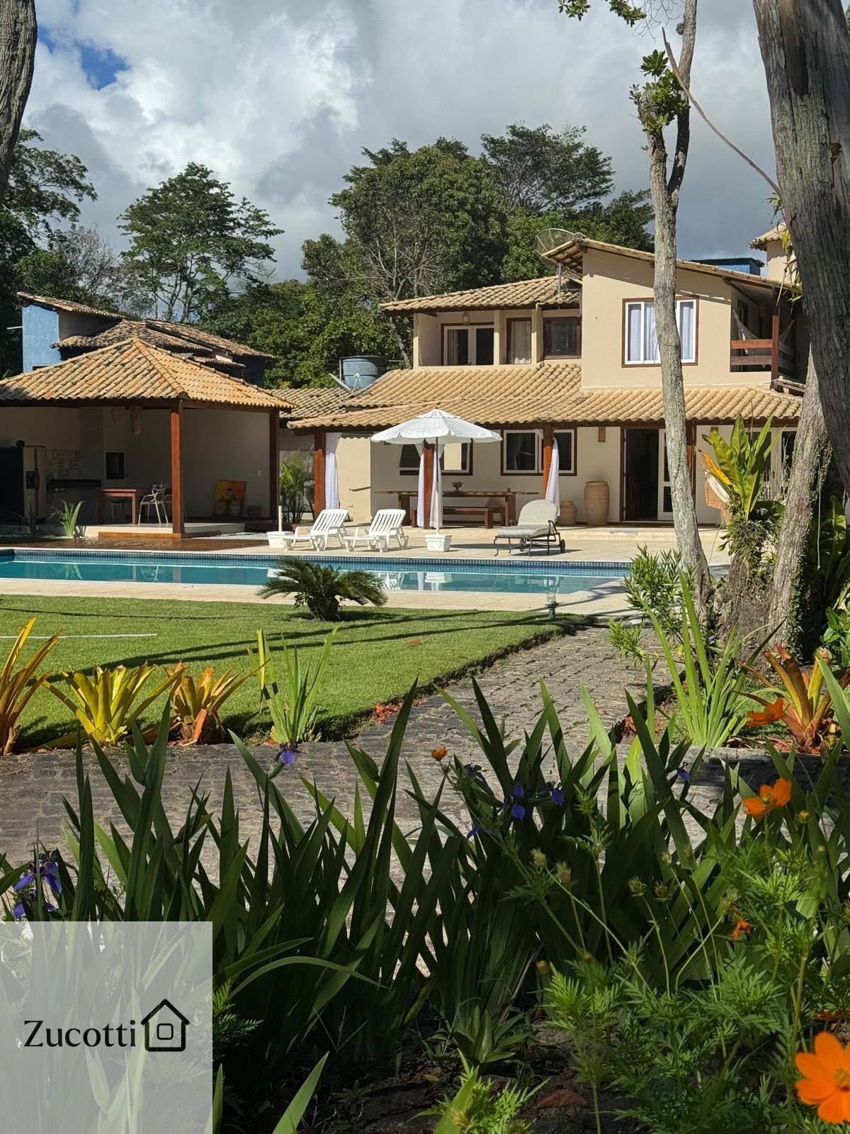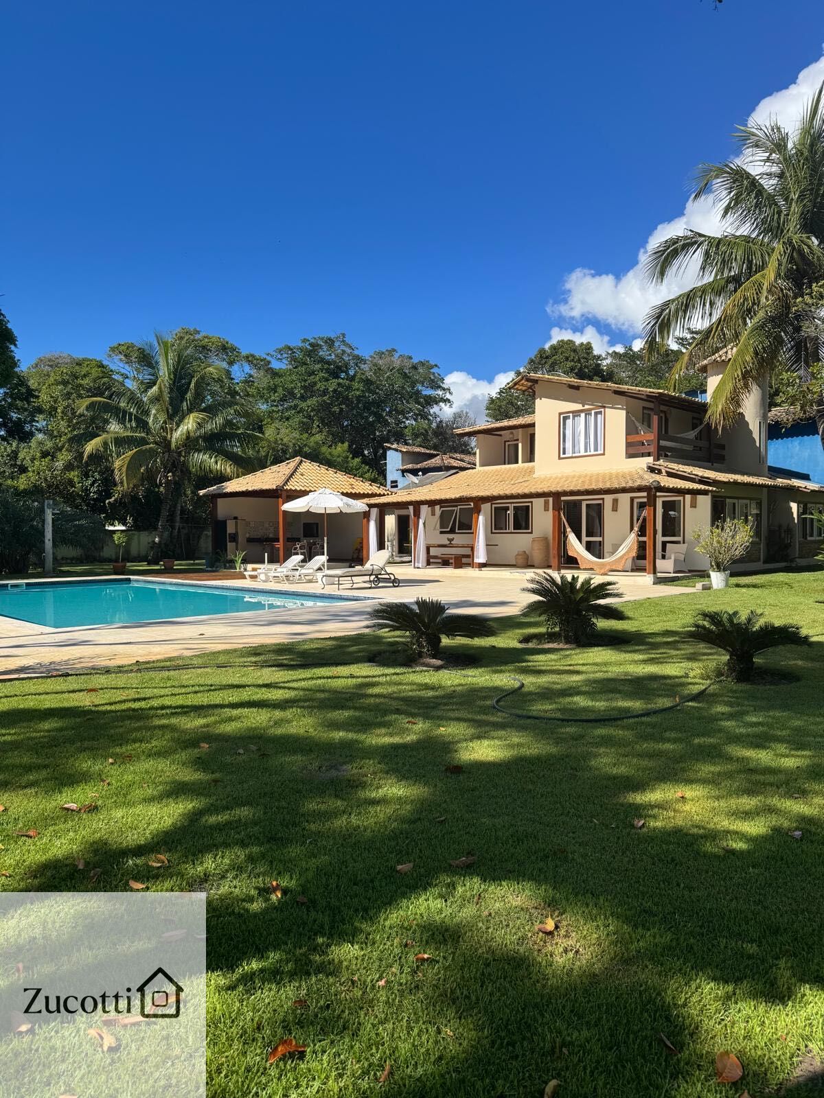 Casa de alto padrão com belo parque grande, piscina enorme, deck e area gourmet comporta ate 9 pessoas com funcionários. a 100 metros da praia. Zucotti Imóveis 73991415069, 73991999116